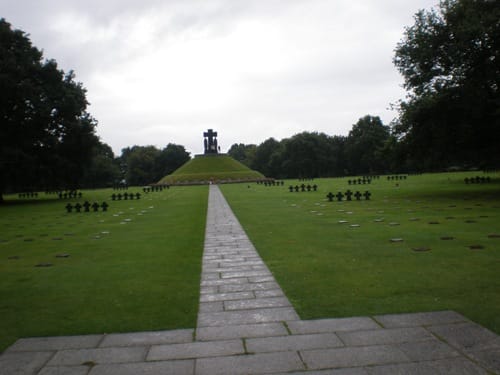 Uno de estos cementerios fue este, cuyas obras comenzaron en 1954 y fue inaugurado en septiembre de 1961. En él residen más de 21.000 soldados alemanes, marineros y aviadores. En el centro, hay un pequeño montículo al que se accede por unas escaleras que está rematado por una cruz grande y oscura, que sirve de lápida para el descanso de 207 desconocidos y 89 soldados alemanes identificados, enterrados juntos en una fosa común.